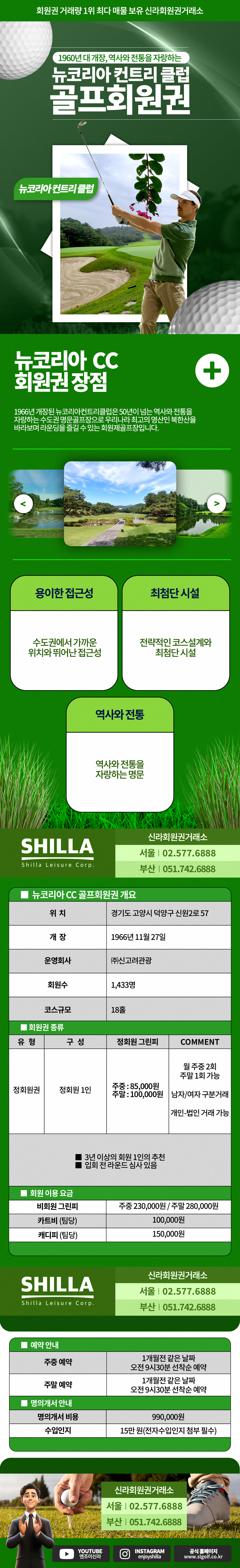 뉴코리아 골프 회원권 그린피, 예약 안내 - 신라회원권거래소 본문