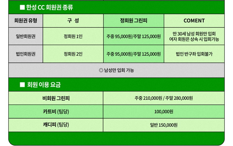 한성cc 법인 회원권 가격 시세 혜택 안내 본문