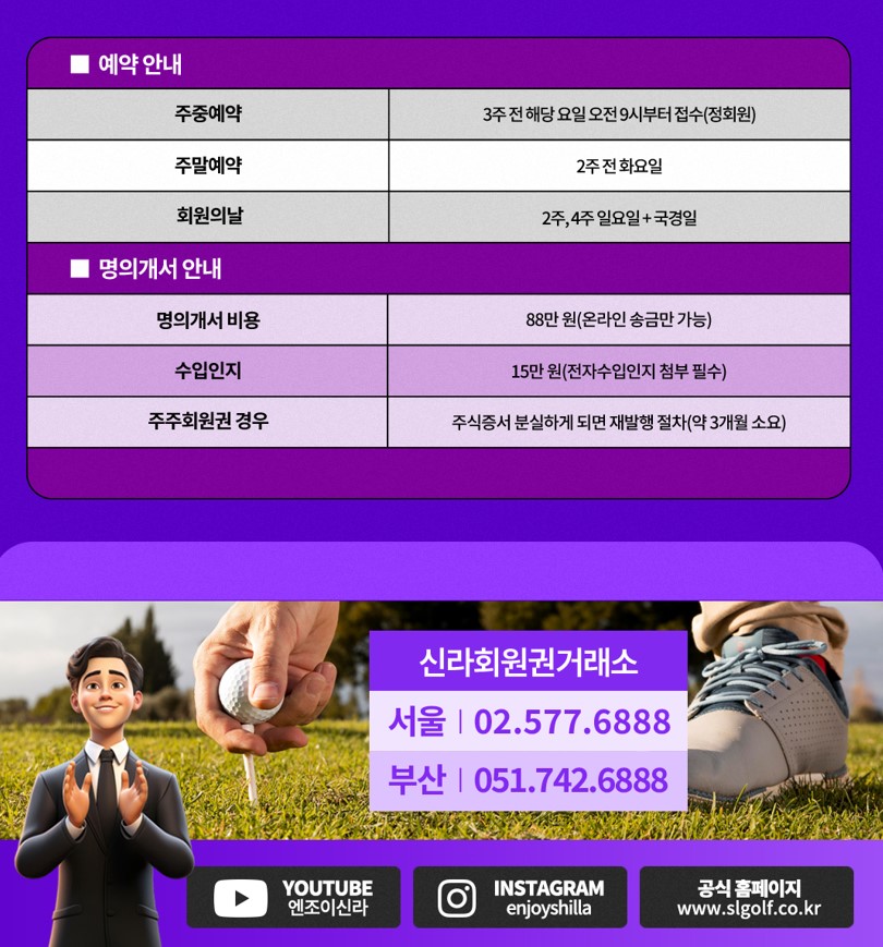 안녕하세요. 골프/콘도/리조트 회원권 매매 전문 신라회원권거래소 입니다. 골프 회원권 시세 조회 실시간...