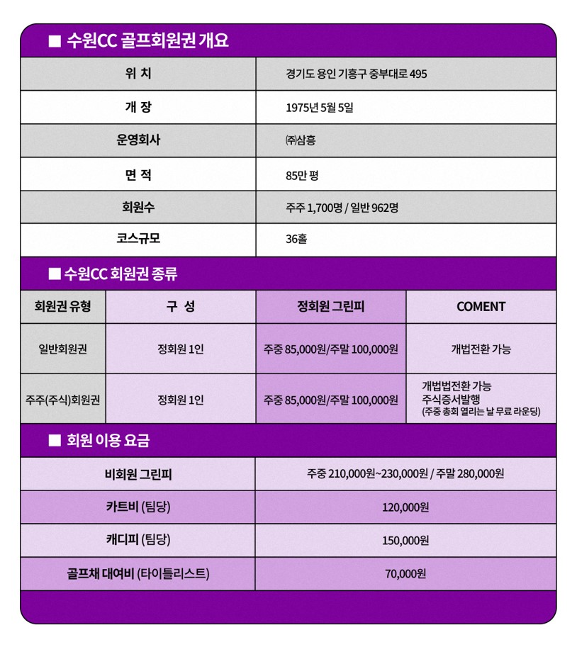 수원cc 회원권 가격 시세 최신 혜택 업데이트 본문