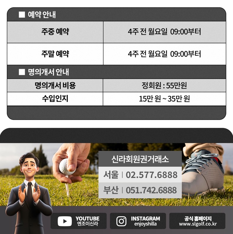 안녕하세요. 골프/콘도/리조트 회원권 매매 전문 신라회원권거래소 입니다. 골프 회원권 시세 조회 실시간...