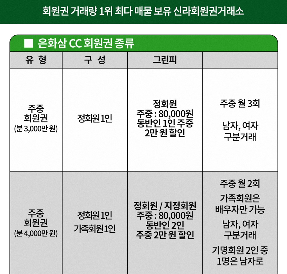🟩 은화삼 CC 회원권 가격 시세